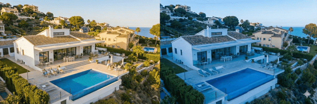 Aan de Costa Blanca is oriëntatie cruciaal. Zuid- en zuidwestgerichte woningen genieten meer zon in de winter, terwijl woningen op hogere, open zones gevoeliger zijn voor wind. Twee identieke woningen kunnen hierdoor een compleet andere leefervaring bieden.