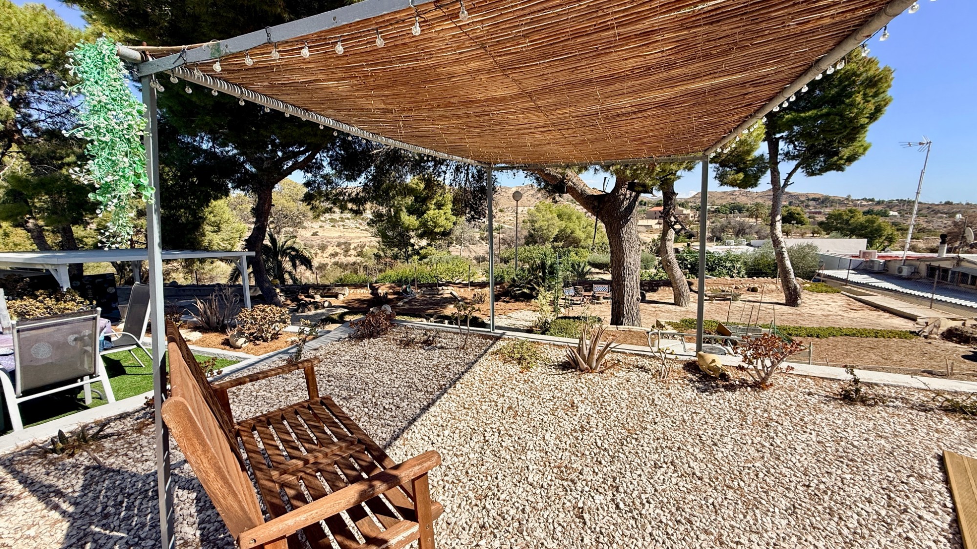 Stellen Sie sich vor, in ruhiger Lage mit Blick auf die spanische Landschaft zu wohnen und dennoch nur wenige Minuten von Aspe und der lebendigen Stadt Elche entfernt. Diese kürzlich renovierte Villa verbindet modernen Komfort, charmante Außenbereiche und einen blühenden Obstgarten die perfekte Mischung aus rustikalem Charme und zeitgemäßem Wohnen. Höhepunkte Toplage zwischen Aspe und Elche mit schönem AusblickKomplett renoviert vom Boden bis zur DeckeGroße überdachte Veranda (Nea) ideal zum ganzjährigen Wohnen im FreienOffener Wohn-, Ess- und Küchenbereich4 Schlafzimmer, inkl. Hauptschlafzimmer mit Galerie-AnkleideraumModernes Familienbad und praktischer AbstellraumKlimaanlage sowie Wasser-, Strom- und InternetanschlussSeparater Raum (30m²) ideal als Gästeapartment, Fitnessraum oder AtelierLandschaftlich gestaltete Gärten mit Terrassen, Sitzbereichen und GemüsegartenReife Bäume im Vorgarten, die im Sommer wohltuenden Schatten spenden ZusammenfassungEine wunderschön renovierte 4-Schlafzimmer-Villa mit modernen Innenräumen, herrlichen Außenbereichen und eigenem Obstgarten perfekt gelegen zwischen Aspe und Elche.