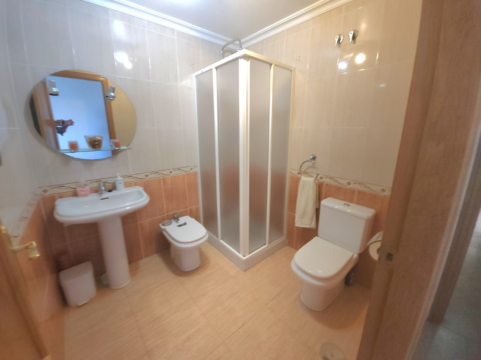 EL ARFERO freut sich, diese geräumige Wohnung im dritten Stock auf dem Markt anbieten zu können.Die Immobilie bietet 102 m² gut aufgeteilten Wohnraum. Beim Betreten der Wohnung empfängt Sie ein Flur, der zu einem Familienbadezimmer und zwei großzügigen Doppelzimmern führt, die beide über Einbauschränke verfügen. Eines dieser Schlafzimmer verfügt zudem über einen direkten Zugang zum Badezimmer, wodurch eine praktische En-suite-Lösung entsteht. Die voll ausgestattete Küche mit Essbereich ist hell und funktional und verfügt über einen separaten Hauswirtschaftsraum.Weiter geht es zu einem dritten Doppelzimmer mit Einbauschränken und eigenem Bad. Dieser Bereich führt auch zum großen Wohnzimmer, dessen Terrassentüren auf einen privaten Balkon mit herrlichem Blick auf die umliegende Landschaft und den nahegelegenen Park führen.Zu den weiteren Ausstattungsmerkmalen gehören eine Klimaanlage mit Heiz- und Kühlfunktion im gesamten Gebäude, ein Aufzug zu allen Etagen sowie ein privater Abstellraum auf der gemeinschaftlichen Dachterrasse.Die Wohnung befindet sich in idealer Lage in Almoradí, nur wenige Gehminuten von allen lokalen Annehmlichkeiten wie Geschäften, Bars und Restaurants entfernt. Die schönen Strände von Guardamar del Segura sind nur eine 15-minütige Autofahrt entfernt, und der internationale Flughafen Alicante ist in etwa 30 Minuten zu erreichen.