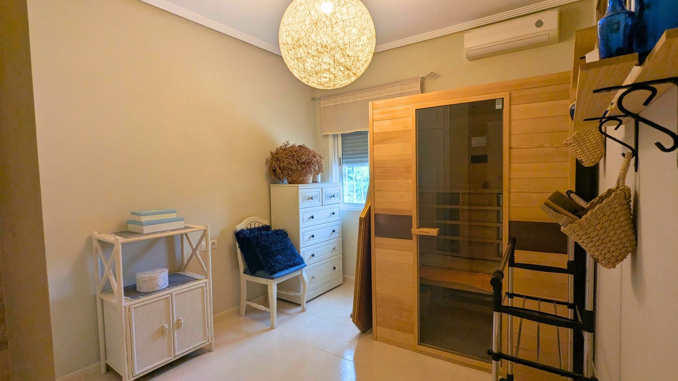 Step into Mediterranean comfort with this beautiful detached villa built in 2005, offering a perfect blend of privacy, space, and style. Located on a generous 2,000 m² plot, this lovely home boasts a built area of 115 m², featuring 3 bedrooms and 2 bathrooms.