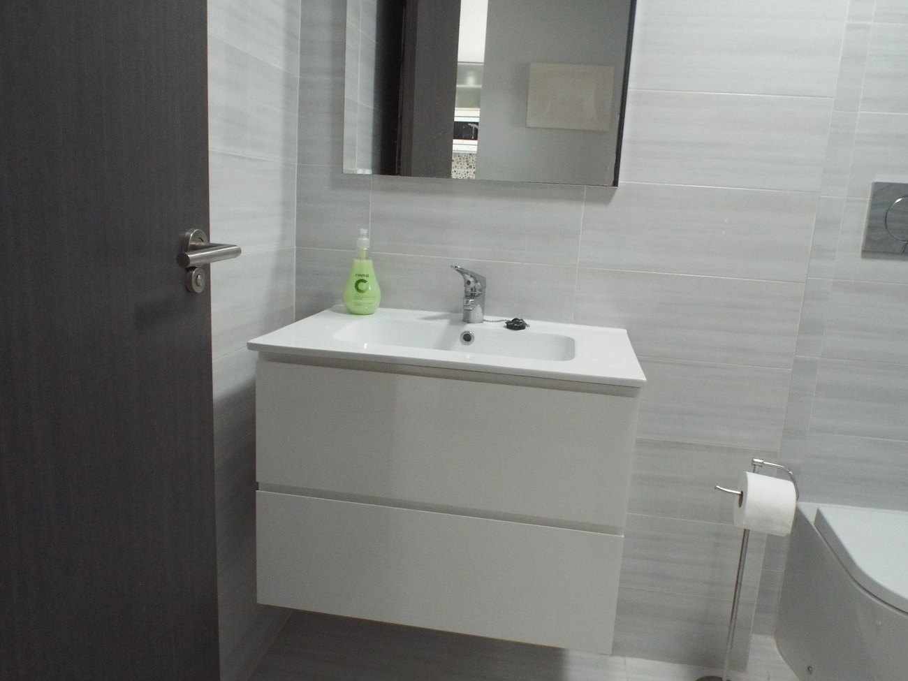 Sunny penthouse with private roof terrace in new condition with sea viewsThis residential complex consists of 33 apartments and offers a communal pool, jacuzzi, and lush garden areas. The property for sale is located on the top floor and features a private rooftop terrace.Upon entering, you are welcomed by an open-plan kitchen with an adjoining laundry area. The kitchen is separated from the living room by a breakfast bar, creating a social and inviting atmosphere. The living room has direct access to a spacious terraceperfect for family gatherings and relaxation. From here, you can enjoy stunning views of the communal green areas and the pool.The apartment has two bedrooms: one adjacent to the living room and the other to the left of the hallway. A staircase in the living room leads ...