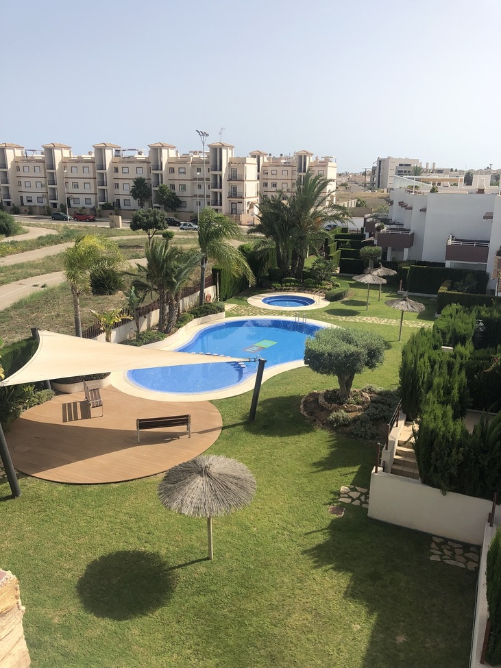 Sunny penthouse with private roof terrace in new condition with sea viewsThis residential complex consists of 33 apartments and offers a communal pool, jacuzzi, and lush garden areas. The property for sale is located on the top floor and features a private rooftop terrace.Upon entering, you are welcomed by an open-plan kitchen with an adjoining laundry area. The kitchen is separated from the living room by a breakfast bar, creating a social and inviting atmosphere. The living room has direct access to a spacious terraceperfect for family gatherings and relaxation. From here, you can enjoy stunning views of the communal green areas and the pool.The apartment has two bedrooms: one adjacent to the living room and the other to the left of the hallway. A staircase in the living room leads up to the private rooftop terrace, which offers ample space for relaxation and entertaining.The property includes an open parking space within the complex, as well as access to a bicycle storage area.PROPERTY DETAILSTotal area: 141 m². Living area: 67.66 m². Terrace/Balcony: 13.98 m². Rooftop terrace: 64 m² Rooms: 3 (2 bedrooms, 1 bathroom). Orientation: South-facing, with views of the pool and garden. Amenities: Communal pool and jacuzziPRICEAn additional cost of approximately 13% applies, including 10% VAT and the remaining amount covering administrative and legal fees.OPERATING COSTSCommunity fee: approx. 323/quarter. Property tax (IBI): approx. 203/year. Electricity subscription: approx. 29/month. Water subscription: approx. 36/quarter. Home insurance: approx. 244/year. Garbage collection: approx. 60/year (from 2025). Non-resident income tax: approx. 170/yearAvailability: Handover upon registration of the title deed.SURROUNDINGSThe property is ideally located in Punta Prima, close to Torrevieja and Orihuela Costa. Within walking distance, you will find restaurants, bars, supermarkets, shopping centers, and beautiful beaches. The beach of Punta Prima is just a short stroll away, and within a few minutes by car, you can reach all the beaches of Orihuela Costa. Torreviejas city center is only a five-minute drive, and the area is also easily accessible by bicycle.Punta Primas shopping center is less than a 10-minute walk away, with all essential services conveniently nearby. For golf enthusiasts, three renowned 18-hole golf coursesVillamartin, Campoamor, and La Ramblaare just a 10-minute drive away.The area has excellent public transport connections, with buses to Torrevieja and further links to the airport. There are also bus connections to nearby locations, including La Zenia Boulevard. Alicante Airport is approximately 40 km away, and Murcia Airport can be reached in about 50 minutes by car.