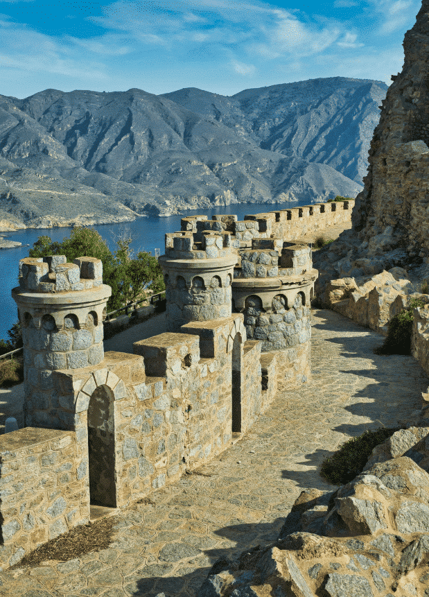 Wie iets verder wil gaan, wordt beloond met een van de meest unieke bezienswaardigheden van de regio: de Batería de Castillitos, een fort dat in de jaren ’30 werd gebouwd bovenop de kliffen van Cabo Tiñoso. Met zijn torens, schietgaten en enorme kustkanonnen lijkt het haast op een fantasiekasteel. Maar het indrukwekkendste is het uitzicht: een overweldigend panorama over ruige kliffen, diepe baaien en een oneindige Middellandse Zee. Castillitos is een plek waar de geschiedenis tastbaar wordt en de omgeving je stil maakt — een absolute aanrader voor wie de combinatie zoekt van avontuur, natuur en indrukwekkende architectuur.