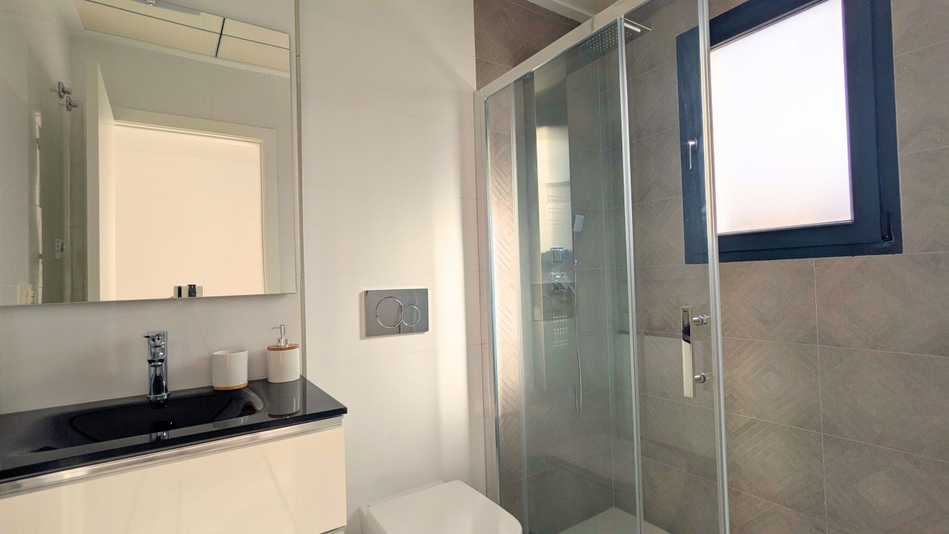 Elke slaapkamer is voorzien van inbouwkasten en de woning is uitgerust met centrale airconditioning voor comfort het hele jaar door. Er is ook privéparkeergelegenheid op het perceel en tuinmeubilair is inbegrepen.