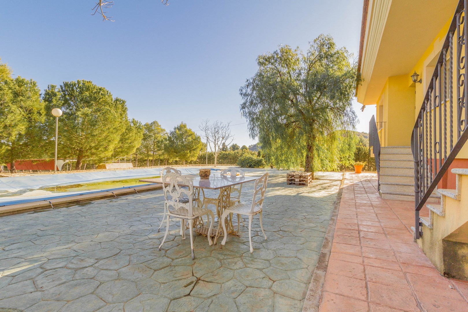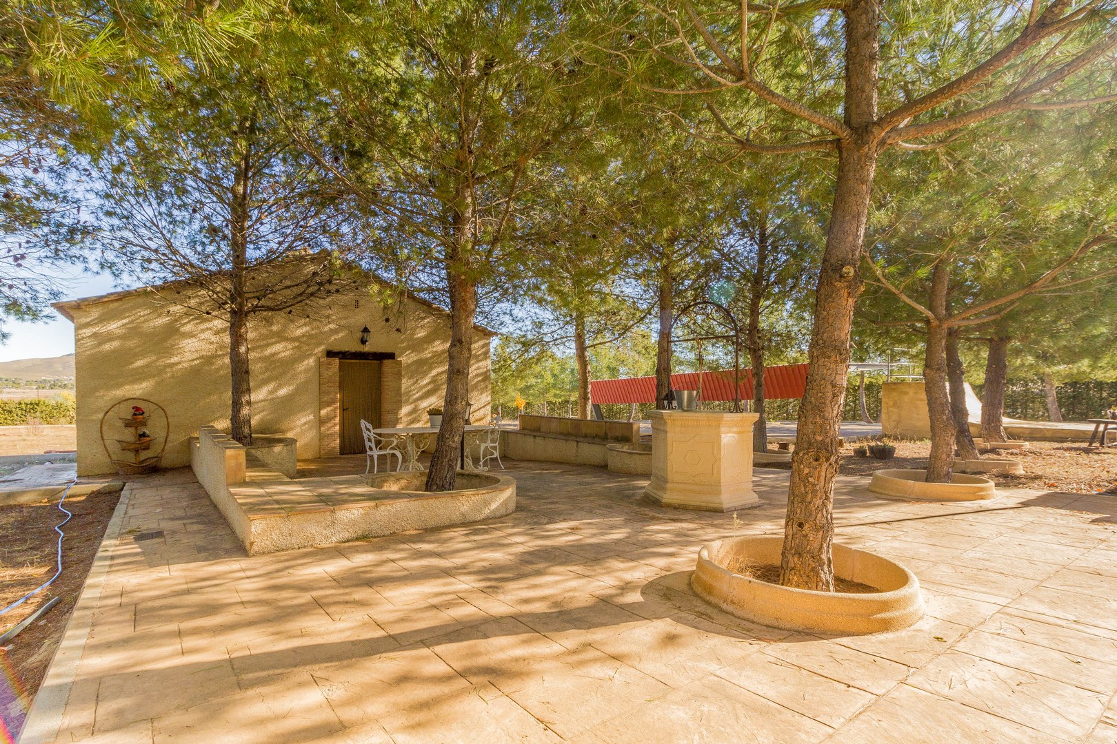 Luxury villa with a guest house - ready to move in! Located in a privileged setting just a few minutes from the town centre of Yecla, this exceptional property sits on a generous 6,000 m² plot, offering privacy, space and stunning open views of the surrounding mountains. A unique opportunity for those seeking tranquillity without renouncing proximity to all amenities.Main house 450 m² builtThis bright and spacious residence is distributed over four levels, designed to provide maximum comfort and versatility:Semi-basement floor (140 m²) - An ideal space for leisure and social gatherings. It features a large living-dining area with fireplace and traditional wood oven, an additional kitchen, and multi-purpose areas suitable for a gym, cinema room or games room.Ground floor (177 m²) - The main living area includes a cosy living-dining room with fireplace, a spacious kitchen, 2 double bedrooms, 1 full bathroom, an internal garage and a pleasant covered porch.First floor (76 m²) - The sleeping area offers 5 generously sized bedrooms and 2 bathrooms. Four of the bedrooms enjoy direct access to their own private terraces, providing beautiful views and abundant natural light.Attic (57 m²) - An exclusive lookout point with panoramic mountain views, perfect as a relaxation area, office or creative studio.In total, the main house offers 7 bedrooms and 3 bathrooms.Outdoor areas and additional buildingsThe exterior has been designed as a private oasis for outdoor living and entertaining.Swimming pool (50 m²) - Equipped with a filtration system, ideal for enjoying the summer months.Guest house / Barbecue area (50 m²) - An independent building with living room-kitchen, fireplace and 1 bathroom. Perfect for hosting guests or organising private events.Plot (6,000 m²) - Asphalted perimeter for easy access, extensive landscaped garden areas, mature trees and additional land suitable for personal cultivation. All fenced and private. Parking - Covered outdoor parking area with capacity for up to 4 vehicles.Quality features and equipmentThe property benefits from PVC windows with double glazing and air chamber (Climalit system) throughout, ensuring excellent insulation. Heating and hot water are provided by an oil-fired boiler. Its strategic orientation guarantees abundant natural light in every room.A remarkable estate combining generous living spaces, natural surroundings and high-quality features, ideal as a permanent residence or exclusive countryside retreat.About the area: Yecla is a charming and historic town of app. 35000 inhabitants, located in the region of Murcia. It is renowned for its award-winning wines, historical landmarks, and vibrant local culture. The surrounding natural landscapes of scenic mountains, vineyards and almond groves provide opportunities for outdoor activities, while the town itself offers all necessary services, including hospital, schools, shops, restaurants, and other services. With a friendly local community, lively markets, excellent gastronomy, and easy access to nature, Yecla is an ideal location for those seeking authentic Spanish lifestyle - just about an hour from the coast and Alicante airport.About us: We have a large portfolio of properties in the Costa Blanca and Costa Calida areas, specialising in country properties, villas, fincas, building plots and design and build options in the Alicante and Murcia regions with a particular emphasis on Yecla, Novelda, Elda, Monovar, Pinoso, Sax, Villena, Aspe, Fortuna, Jumilla, Abanilla, and many more surrounding areas. We have been established since 2004 and have decades of experience between the team which we bring to bear to help you find and secure your new dream home. We help you every step of the way to make sure your purchase in Spain is safe and hassle free. We are not here to sell you a property, we are here to help you realise your dream and find what is right for you. With us you are in the safest hands. Contact us now to have a no obligation chat about how you too can realise your dreams.