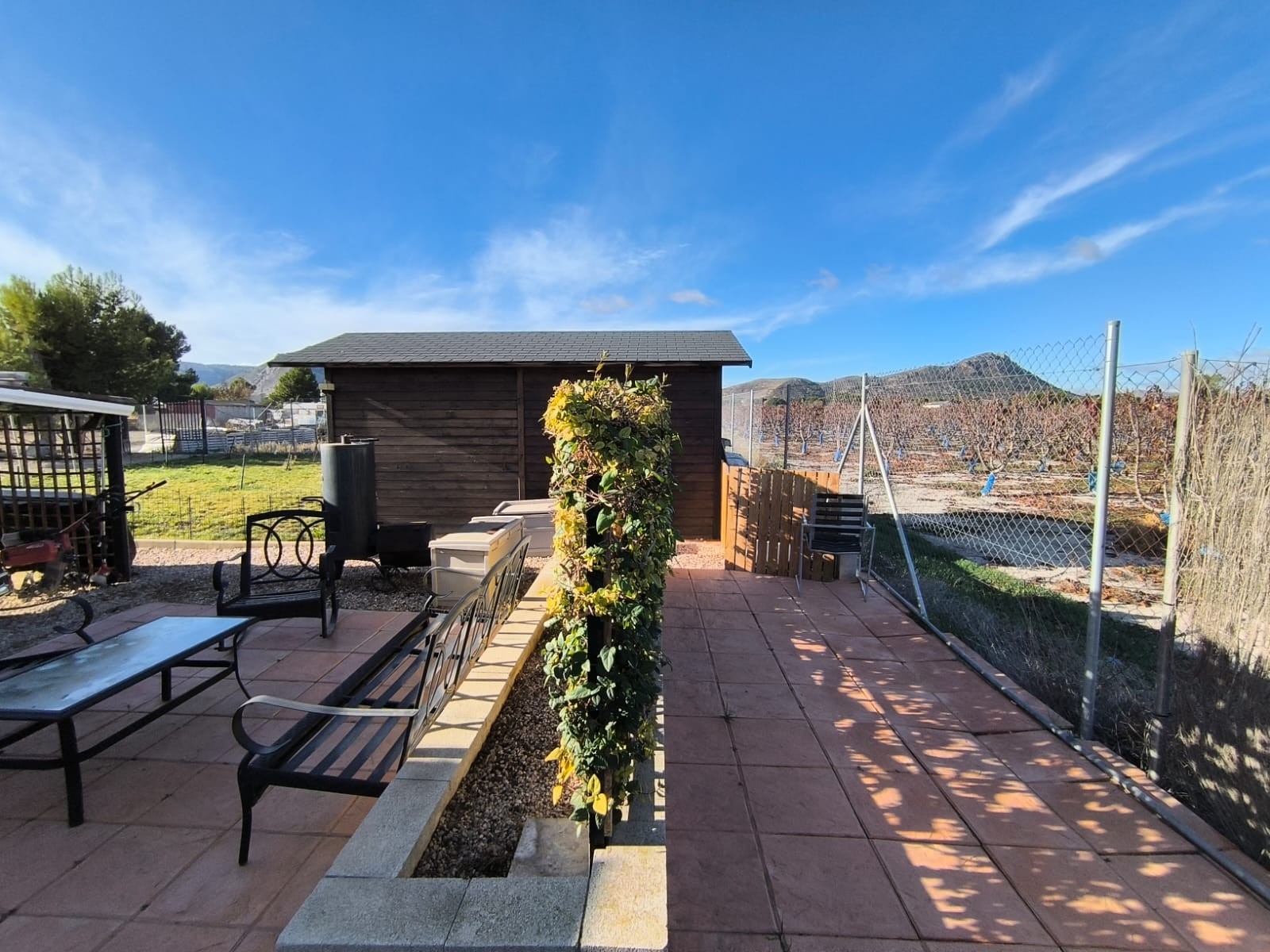 Spacious 5-Bedroom Villa with Guest Studio, Pool & Jacuzzi Villena, AlicanteThis well-maintained villa near Villena offers generous indoor and outdoor living on an 8,000 m² fully fenced plot with beautiful gardens, fruit trees and an olive orchard. With 210 m² built, the property includes a 4-bedroom main house and a separate guest studio, making it ideal for families, guests or those seeking extra space for work or leisure.The main house is set on one level and features 4 bedrooms and 2 bathrooms, a large living room with fireplace, and a spacious office area with an additional small roomperfect for remote work, hobbies or storage. The home also includes a covered outdoor terrace fitted with fly screens, providing a comfortable seating and dining area to enjoy the views year-round. There is also a car port behind the house for 1 car.Outside, the property offers excellent facilities, including a 5x7 m swimming pool, a 6-person jacuzzi, several storage outbuildings, a tool shed and a wooden storage cabin surrounded by its own fenced garden with real grass and fruit trees. Behind the house is a detached guest studio with its own entrance, bedroom and ensuite bathroomideal for visitors or extended family.The land is fully irrigated automatically and divided into two sections: Front orchard with 35 mature olive trees Back garden area with apple, cherry, pear, fig and other fruit trees, plus a large pond The fencing and electrical installation have been recently updated, providing peace of mind and easy maintenance.About the area: The villa is located just a short drive from Villena, a historic inland town known for its medieval castle, vibrant cultural life and excellent local services. Villena offers supermarkets, shops, restaurants, schools, a high-speed train station and quick access to Alicante, which is less than an hour away. Surrounded by vineyards, mountains and open countryside, the area is perfect for enjoying nature while staying close to all daily amenities.A spacious, versatile country home in a peaceful setting with stunning mountain views ideal as a family residence, a countryside retreat or a property with guest accommodation ready to use from day one. We have a large portfolio of properties in the Costa Blanca and Costa Calida areas, specialising in country properties, villas, fincas, building plots and design and build options in the Alicante and Murcia regions with a particular emphasis on Elda, Monovar, Pinoso, Sax, Villena, Aspe, Fortuna, Albacete and many more surrounding areas. We have been established since 2004 and have decades of experience between the team which we bring to bear to help you find and secure your new dream home. We help you every step of the way to make sure your purchase in Spain is safe and hassle free. We are not here to sell you a property, we are here to help you realise your dream and find what is right for you. With us you are in the safest hands. Contact us now to have a no obligation chat about how you too can realise your dreams.