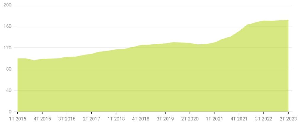 GRAFIEK 2015-2023 | Directe bouwkostenindex